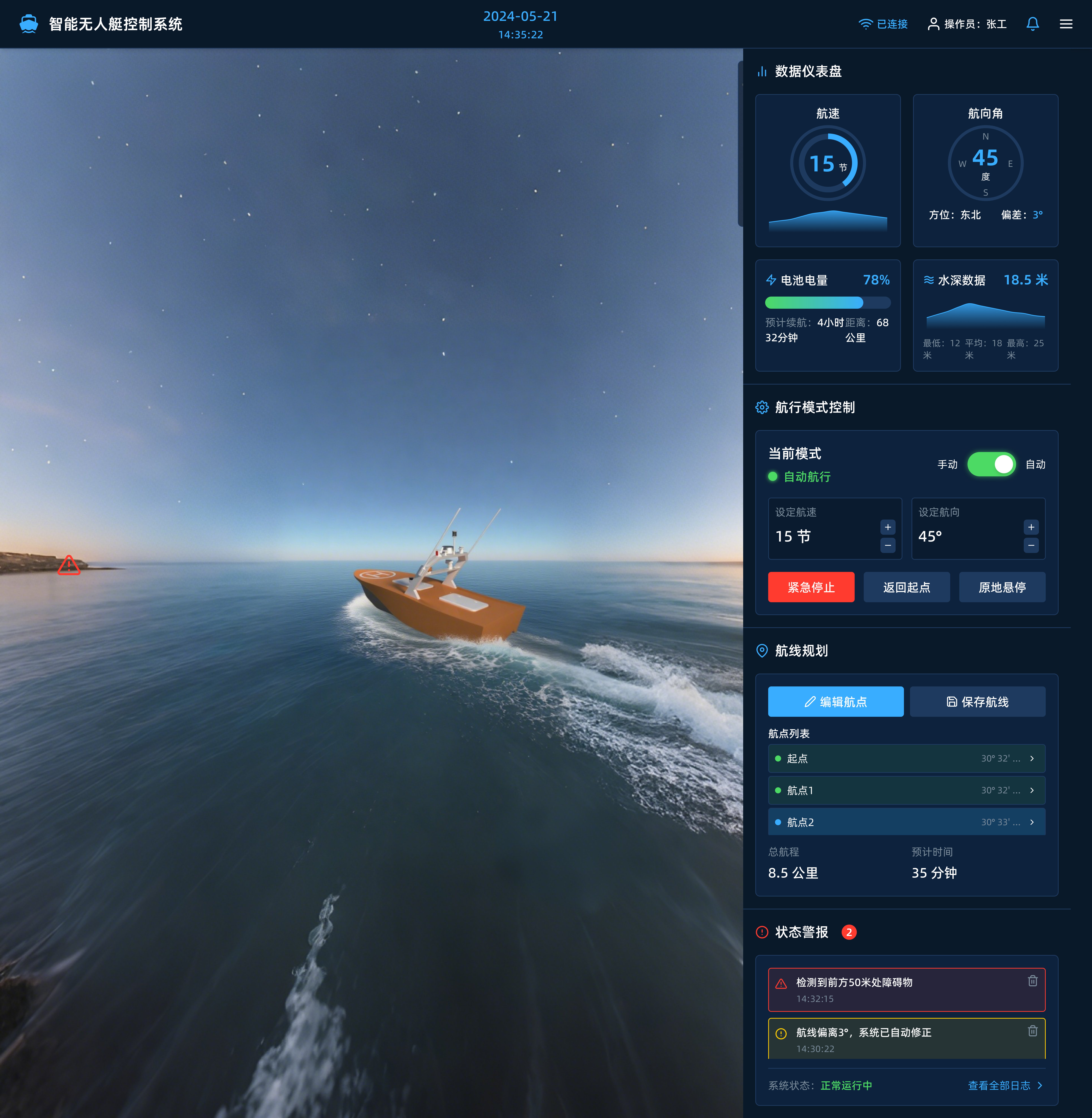 系统广泛适用于智慧渔业、安防巡逻、水面清洁、应急运输等多类无人船场景, 助力行业迈向更智能、更安全、更高效的水上作业新时代。
